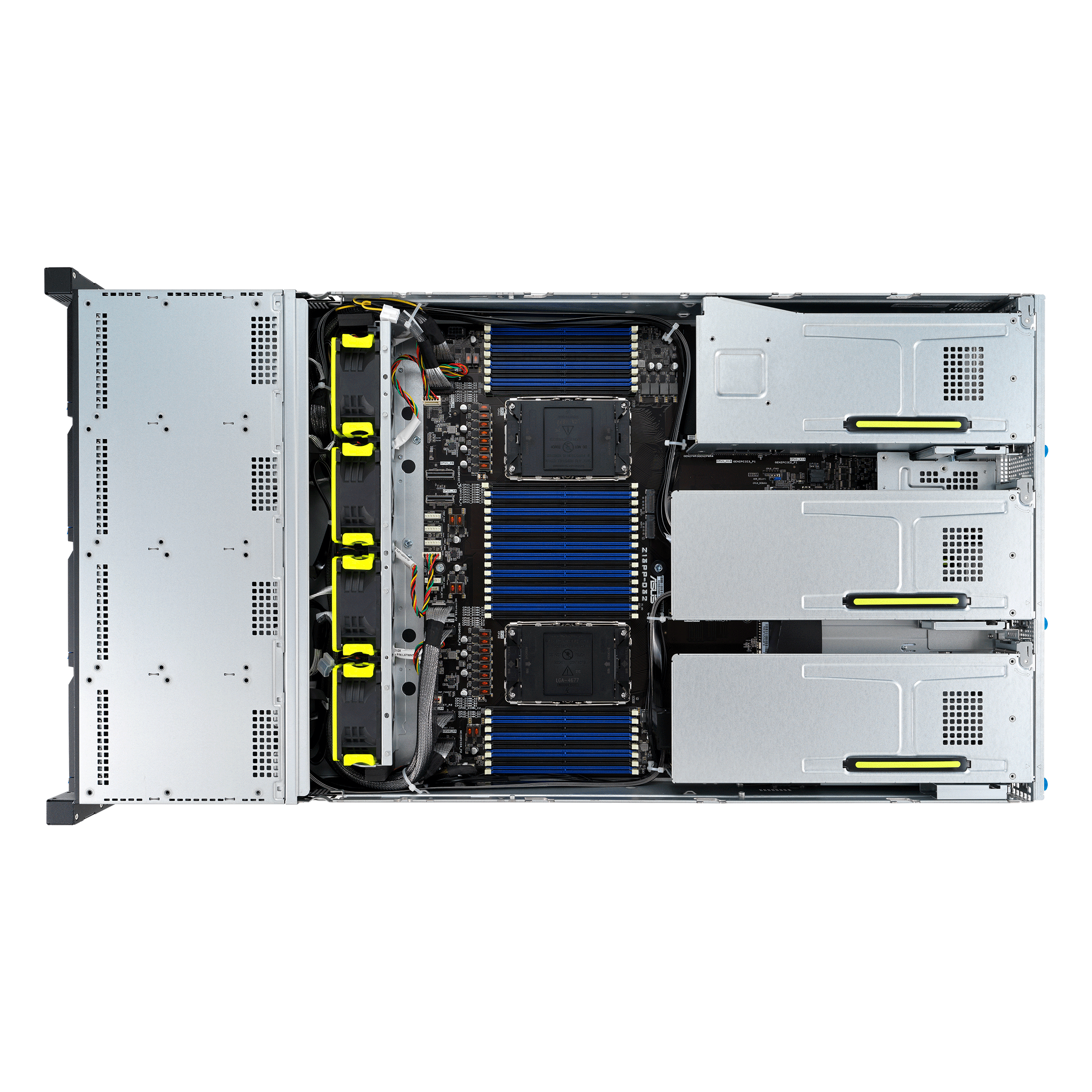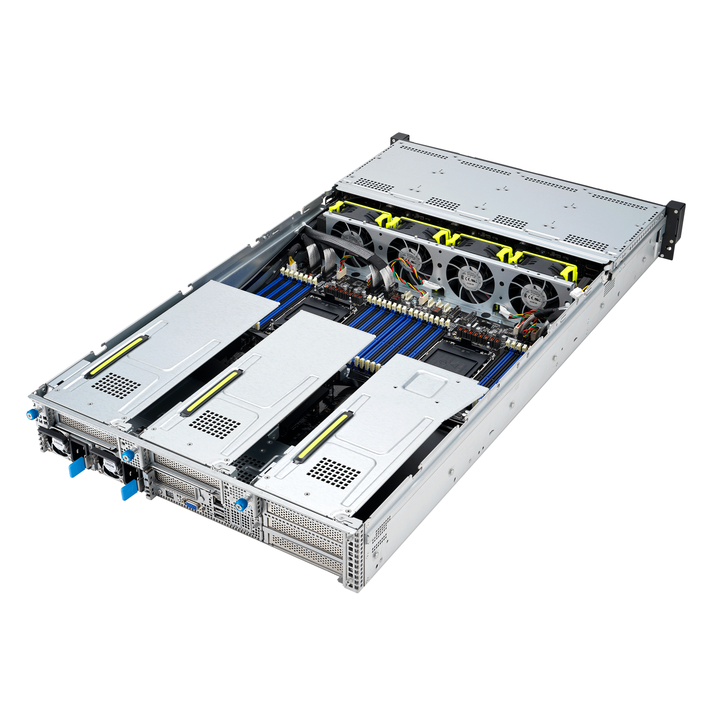 2U 双插槽服务器采用第4代英特尔至强可扩展处理器支持 32个 DIMM, 9个 PCIe 5.0 插槽, 14个 NVMe, OCP 3.0, ASUS ASMB11-iKVM, 以及高达 4个 双插槽 GPU